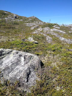 On our hike, we decided to picnic at the top to relax and enjoy the views. We wandered around this summit area, picking blueberries and the odd bakeapple. On the way back down, we had to do a bit more route finding until we hit the tree line. Our hike (up and down) took us about 3 hours.